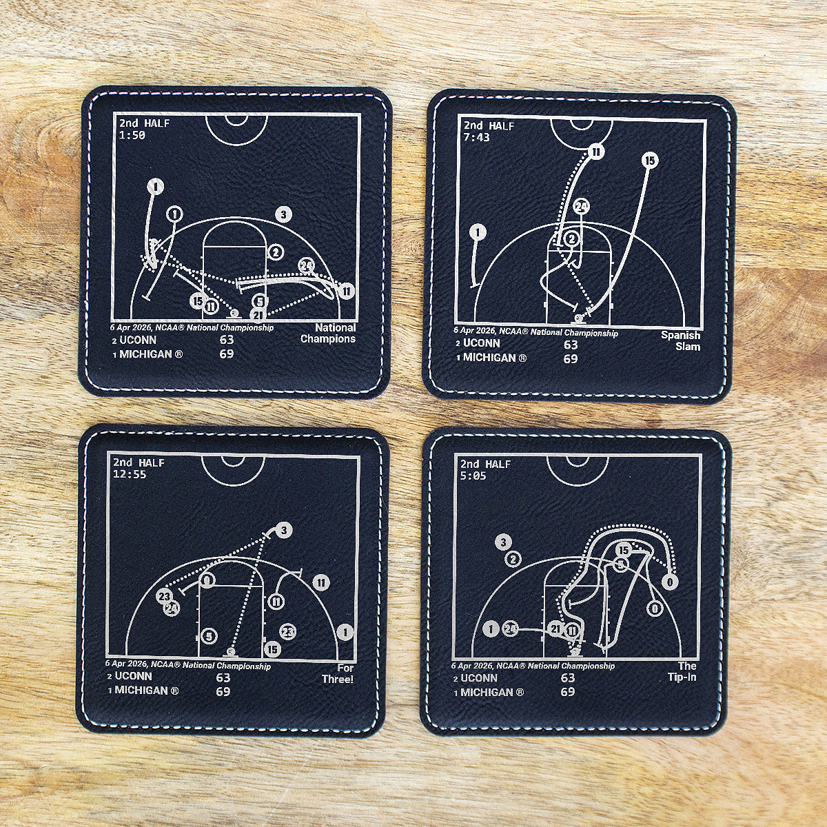 2026 Champions Michigan Basketball Plays: Leatherette Coasters (Set of 4)