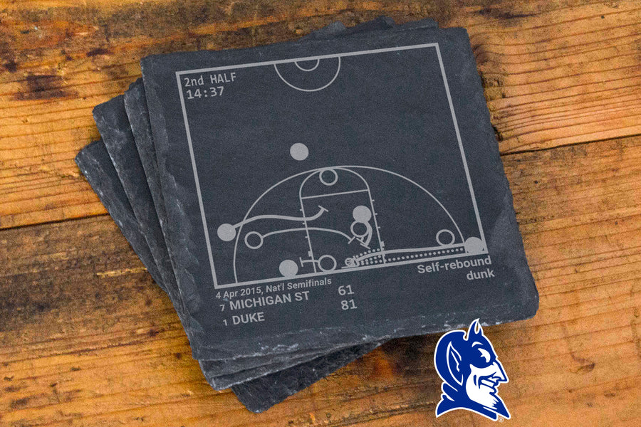 - Set of four coasters laser-etched with the Duke Blue Devils greatest moments.