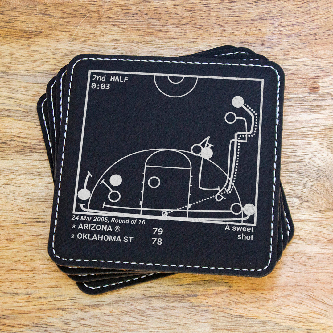 - Set of four coasters laser-etched with the Arizona Wildcats greatest moments.