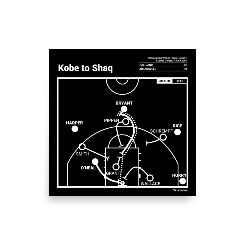In a close game versus Portland in Game 7 of the Western Conference Finals, the most iconic basket came with 41 seconds remaining. Shaq drifted towards the hoop and signaled to Kobe to give him an alley-oop. The resulting dunk was immortalized with the announcer's call of