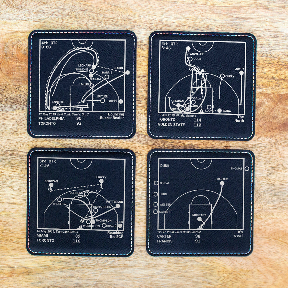 - Set of four coasters laser-etched with the Toronto Raptors greatest moments.