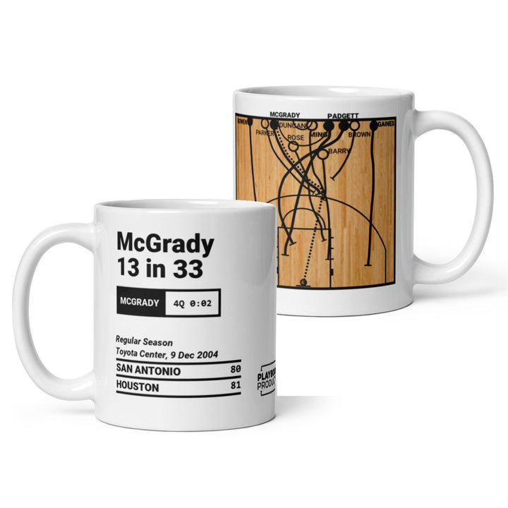 Tracy McGrady's 13 points in 33 seconds is one of the all-time greatest performances by any basketball player. Down by 8 points with 35 ticks left on the clock, McGrady drove the court and put up the first, of what would be, four 3-pointers. San Antonio went 4-for-4 on free-throws, but it didn't matter. Down by 2 points with 1.7 seconds left on the clock, McGrady made his final 3-pointer to win the game.