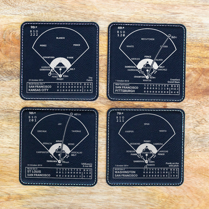 - Set of four coasters laser-etched with the San Francisco Giants greatest moments.