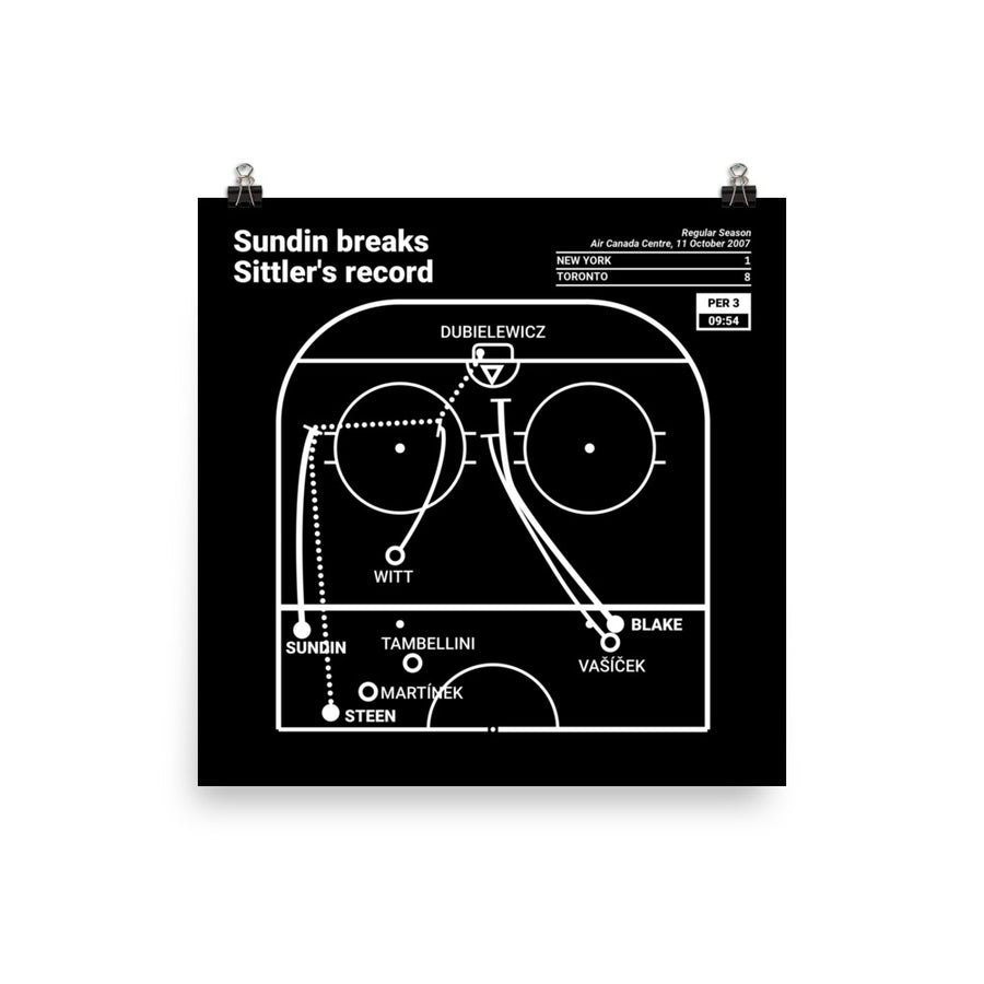 A truly special game for Toronto fans and their legend, Mats Sundin. In one single game, Sundin broke Sittler's club record for both goals and points, forever eternalizing himself in Toronto hockey history. Sundin ended his Toronto career with 420 goals and 987 points, averaging 1.006 P/GP.