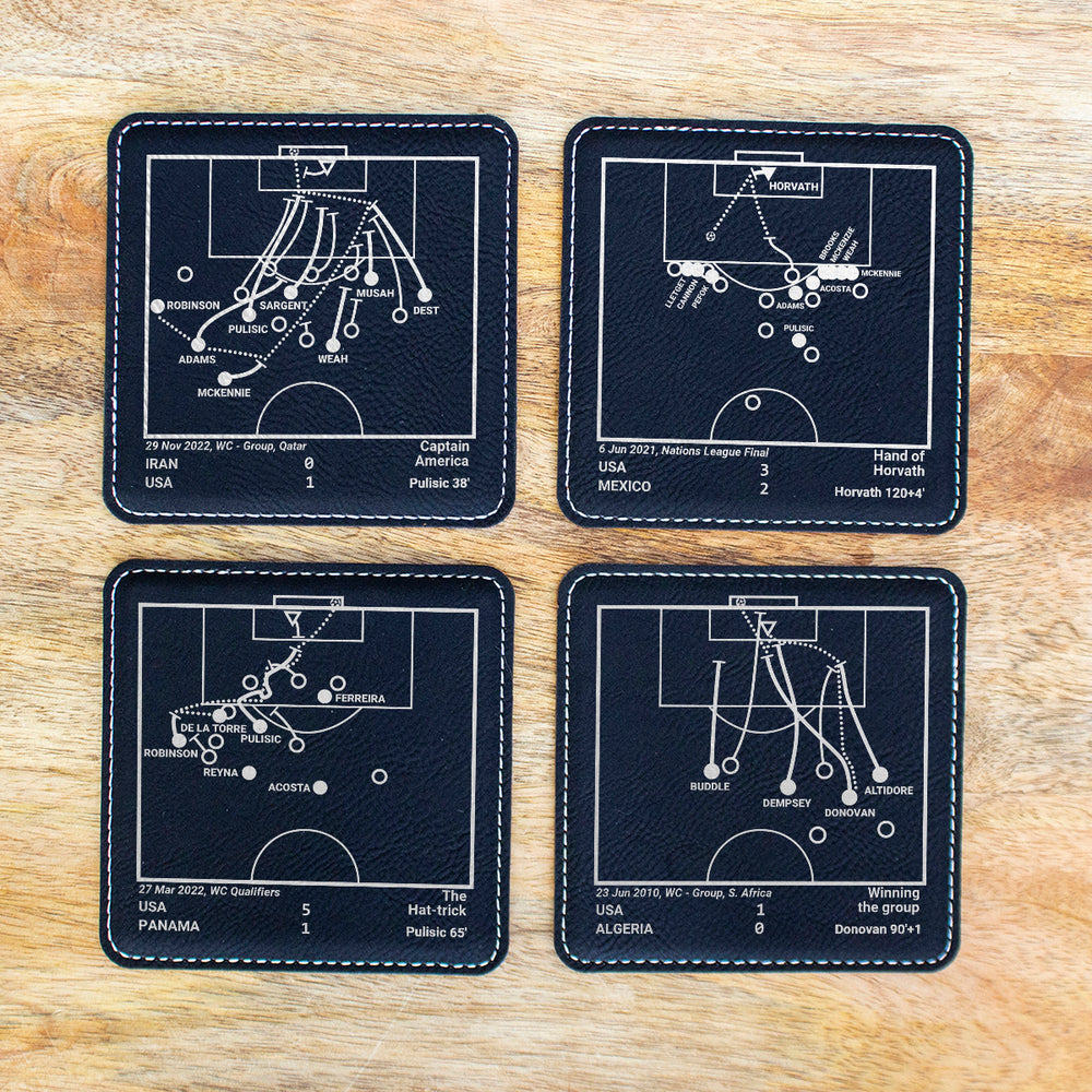 These leather coasters are beautifully made! My husband is an Eagles fan, and finding unique birthday gifts for him is difficult. He was very impressed with these coasters, and even guessed the name of the plays before realizing each was labeled. Highly recommend this product!