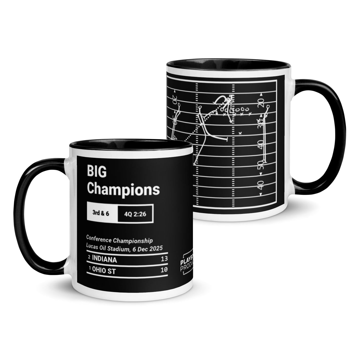 Following a late missed field goal by Ohio State, the Indiana Hoosiers have the ball on their own 24 yard line and it's 3rd & 6 with 2:41 left in a close one score game. You couldn't ask for a better Big 10 Conference Championship game. With a potential conference championship and guaranteed playoff spot on the line, Quarterback Fernando Mendoza drops back and throws an absolute bomb to wide receiver Charlie Becker on the OSU 48. Becker was able to get the defender out of position and on his back hip and makes a leaping catch and carries it to the OSU 43. This gives the Hoosiers a much needed first down and shaves more time off the clock to help lift Indiana to the win over the #1 ranked team in the country and maintain their undefeated status. The Hoosiers are headed to the playoffs with a bye in the first round.