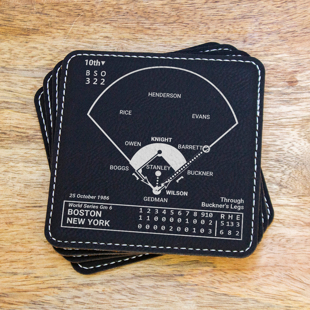 - Set of four coasters laser-etched with the New York Mets greatest moments.