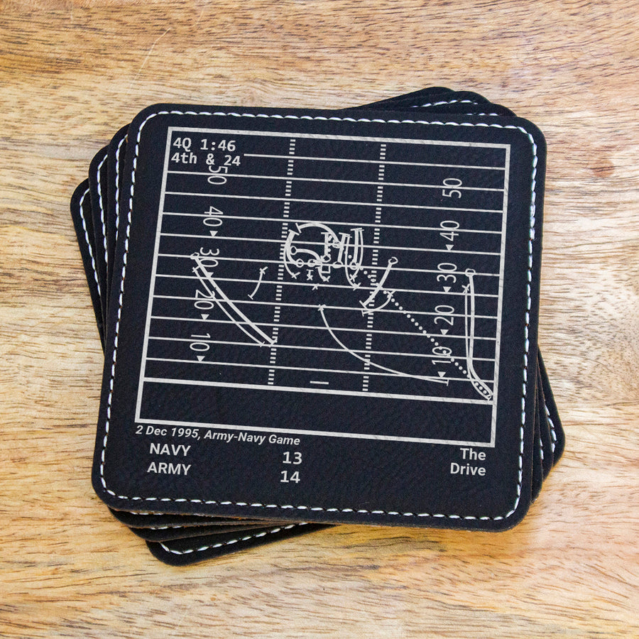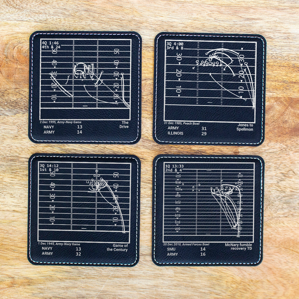 - Set of four coasters laser-etched with the Army Black Knights greatest moments.
