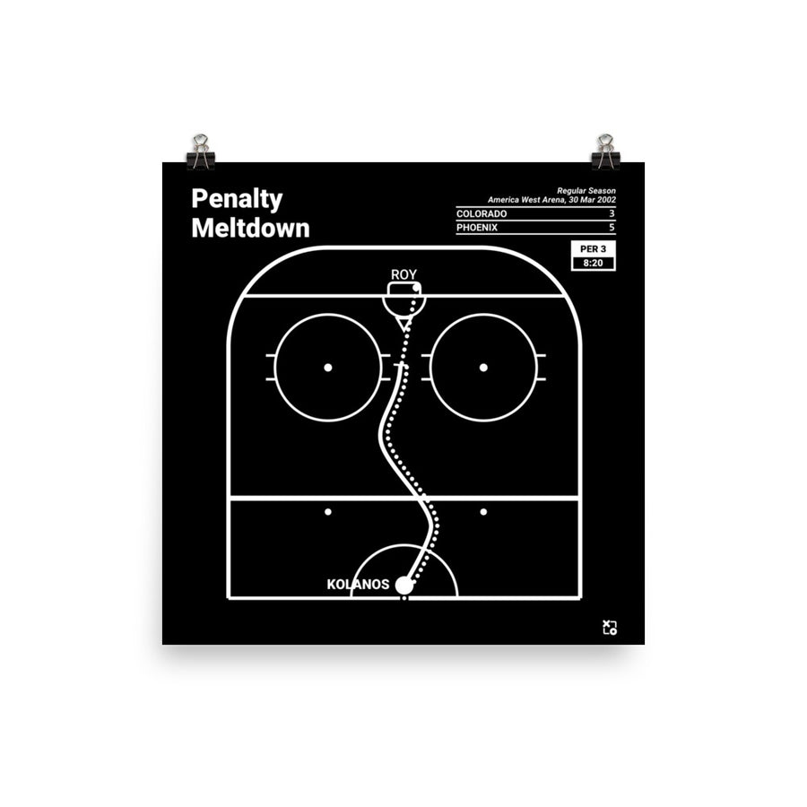 In the third period with the game tied, rookie Krys Kolanos put a penalty shot past future HOF'er Patrick Roy who immediately had a meltdown. Tossing his stick toward Kolanos and the referee, Roy was ejected and Phoenix would win the game in a memorable Phoenix moment.