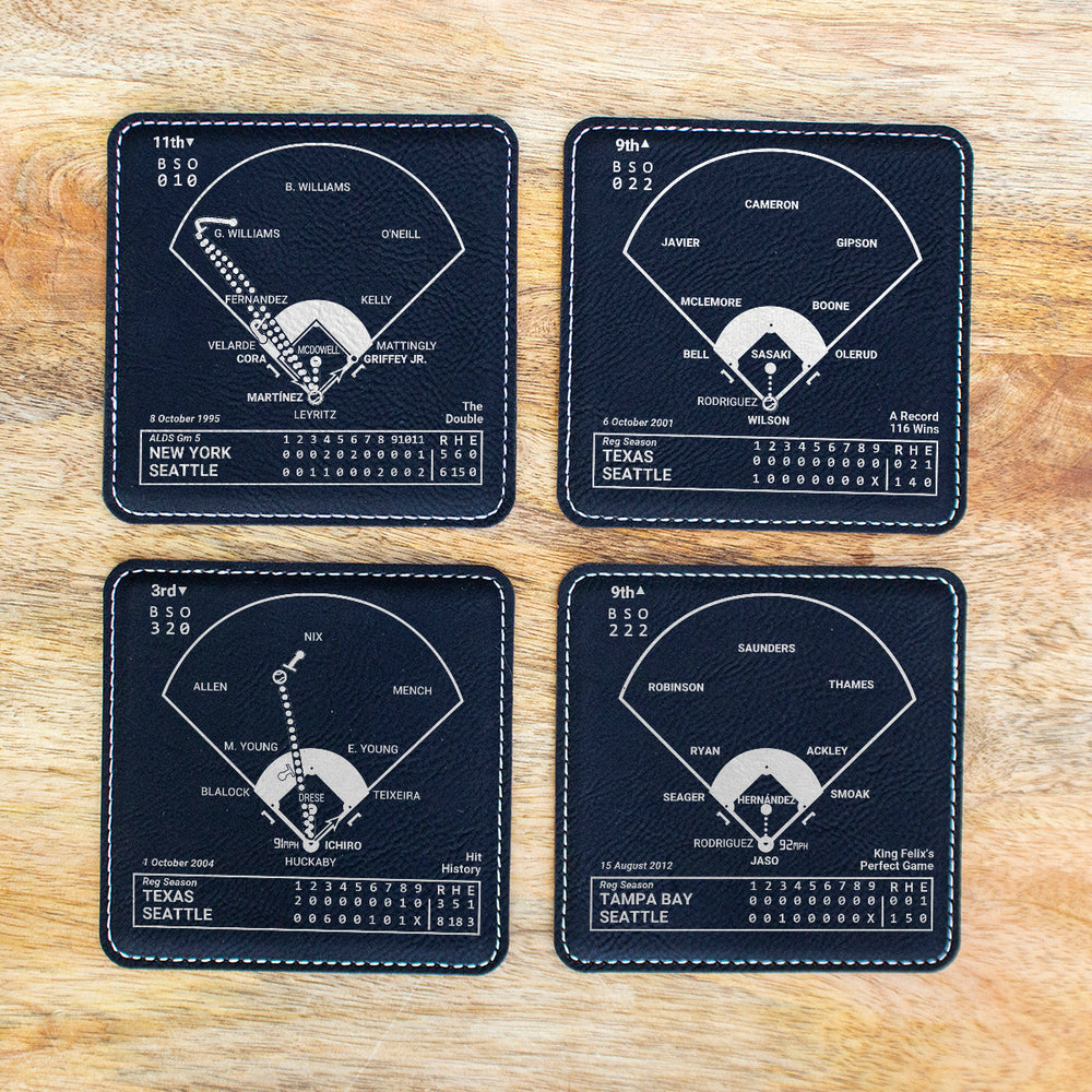 - Set of four coasters laser-etched with the Seattle Mariners greatest moments.
