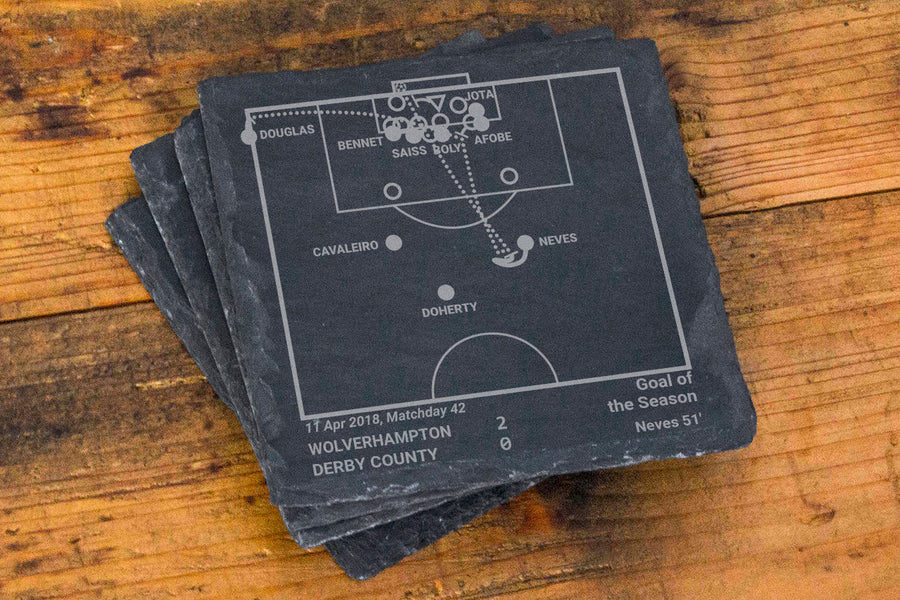 - Set of four coasters laser-etched with the Wolverhampton Wanderers greatest goals.